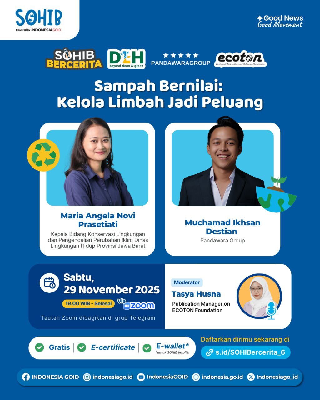 Bareng Kak Maria Angela Novi Prasetiati dari Dinas Lingkungan Hidup Jawa Barat dan Kak Muchamad Ikhsan Destian dari Pandawara Group, kita akan belajar banyak hal tentang bagaimana mengubah limbah jadi sumber peluang yang bermanfaat!