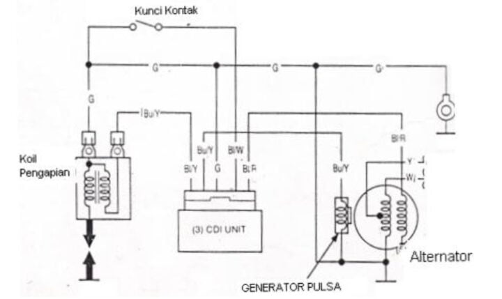 - ON atau IG menghubungkan arus atau tegangan dari baterai ke ignition (Coil +).