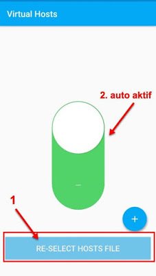 Pilih “RE-SELECT HOST FILE”, lalu arahkan ke file hosts yang sudah kamu download sebelumnya. Setelah itu Virtual Hosts akan otomatis dengan ditandai ikon ON warna hijau. (jangan di clone ke virutal space dan aktifkan virtual hosts harus dari luar virtual space)