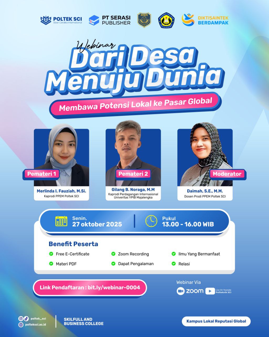 #PoltekSCI #WebinarPPEM #DariDesaMenujuDunia #KampusReputasiGlobal #PPEM #WebinarNasional #MahasiswaAktif #PoltekSCIBerdaya #diktisaintekberdampak