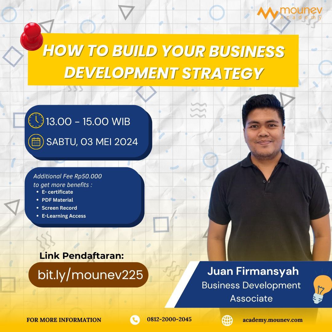 Membangun bisnis bukan hanya soal menjual produk atau layanan, tapi juga tentang strategi yang tepat untuk berkembang. Business Development yang kuat dapat membuka peluang baru, memperluas jaringan, dan meningkatkan daya saing. Namun, bagaimana cara menyusun strategi yang efektif dan berkelanjutan? Yuk, ikuti webinar di bawah in!