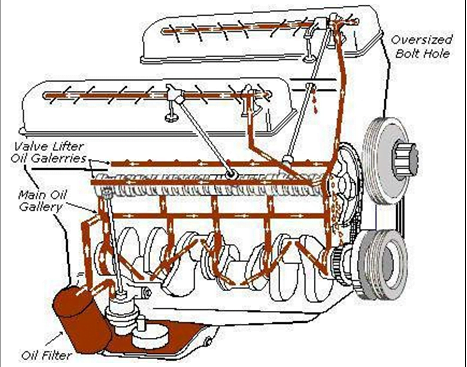 Minyak pelumas yang jatuh ke dalam sump, selanjutnya dialirkan dengan pompa, melalui sebuah filter, dan dikembalikan lagi ke dalam tangki supply yang terletak diluar dari pada motor tersebut. Pompa ini mempunyai kapasitas yang besar, sehingga dapat mengosongkan sama sekali sumpnya