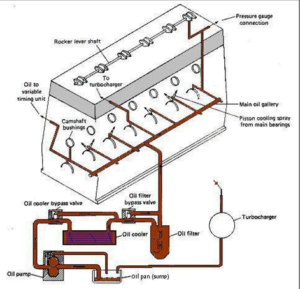 Pada umumnya dengan sistem ini di pergunakan juga sebuah oilcooler, baik yang menggunakan air atau udara sebagai medium pendinginannya untuk keperluan pendinginan dari pada minyak pelumasnya.