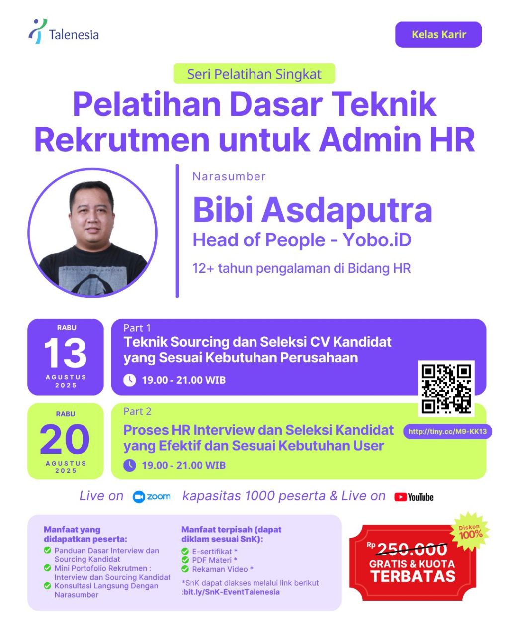 Kalau jawabanmu iya, pas banget! Talenesia punya Kelas Karir spesial Admin HR!