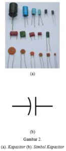 Kapasitor ialah komponen dasar elektronika yang mempunyai kemampuan menyimpan elektron-elektron selama waktu yang tidak tertentu. Kapasitor memiliki karakteristik meneruskan tegangan AC yang melaluinya dan menolak/menahan tegangan DC. Kapasitor sering berfungsi untuk menekan bahkan menghilangkan nois dan membantu membuat tegangan suplai menjadi semakin stabil.