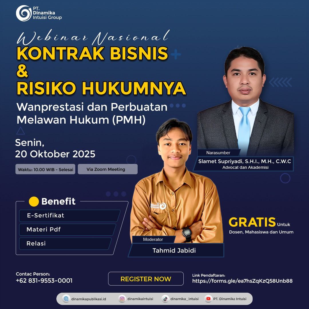 #WebinarHukum #WebinarGratis #HukumBisnis #KontrakBisnis #Wanprestasi #HukumPerdata #BelajarHukum #LawStudent #LegalStudies #PraktisiHukum #Advokat #HukumIndonesia