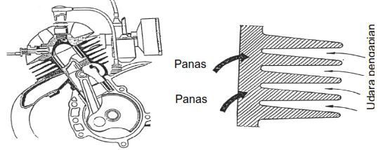 Panas yang ditimbulkan oleh mesin/motor dipindahkan ke dinding silinder dan melalui sirip-sirp menuju ke udara luar. Untuk meningkatkan efisiensi pendinginan, maka permukaan bidang pendinginan diperluas melalui konstruksi sirip-sirip.