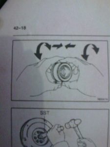 - Putar bantalan dengan tangan. Bila bantalan macet atau terasa berat atau berbunyi ,ganti realese bearing