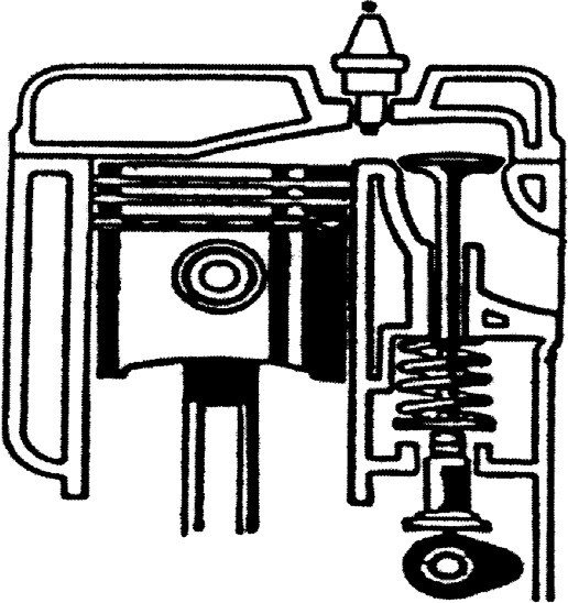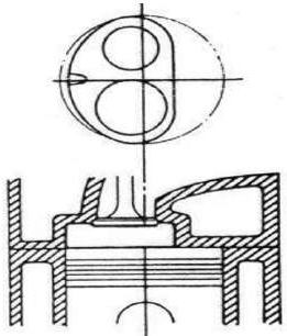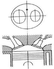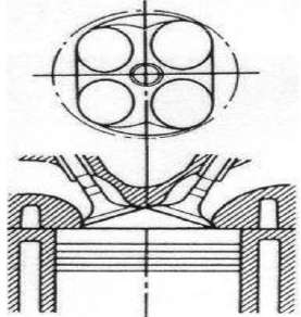 Model ruang bakar yang satu ini juga memiliki efisiensi panas yang baik, selain itu juga mempunyai kontruksi mekanisme katup yang lebih sederhana lagi bila dibandingkan dengan ruang bakar setengah bulat.