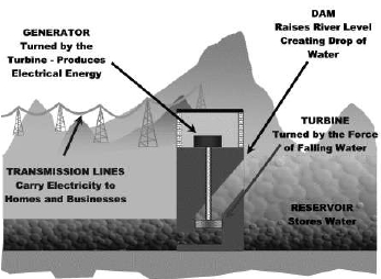 Contohnya air waduk di pegunungan dapat dikonversi menjadi energi mekanik