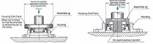 - Berikan adhesive atau sealant pada bagian press fit dari oil seal. Untuk housing yang terbuat dari cast iron harus digunakan pipe sealant untuk mencegah kebocoran.