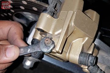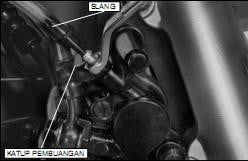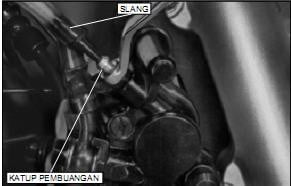 - Tarik dan tahan handel rem, kemudian buka katup pembuangan sebanyak ½ putaran dan tutuplah katup kembali.