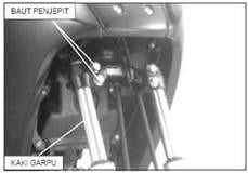 CATATAN : Waktu garpu akan dibongkar, kendorkan baut garpu, tapi jangan dilepaskan dulu.