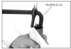 - Lepaskan sil oli dengan memakai alat pelepas sil oli.