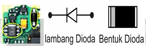 Dioda berfungsi sebagai penyearah arus atau tegangan, karena pada dioda terdapat kutub positif dan kutub negative, komponen dioda ini tidak boleh dipasang terbalik, komponen ini juga ada yang disebut dioda led yaitu dioda yang berfungsi mengeluarkan cahaya