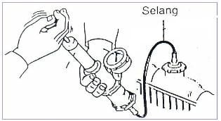- Pasang alat pengukur pada tempat tutup radiator