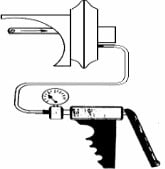 Di dalam manometer terdapat jarum penunjuk dan skala tekanan kompresi dalam beberapa satuan ukuran. Gambar model alat pengukur tekanan kompresi ddan cara penggunaan dapat dilihat pada gambar di bawah ini.