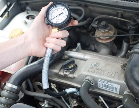 manometer - Tekanan kompresi yang rendah menunjukkan ring piston yang aus, kebocoran pada packing, dan penyetelan celah katup yang terlalu renggang.