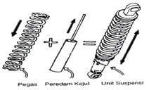 Seperti yang telah disebutkan sebelumnya bahwa suspensi terdiri dari pegas dan peredam getaran, seperti yang terlihat pada gambar di bawah ini:
