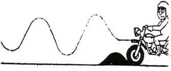 Jika sebuah suspensi tidak dilengkapi dengan peredam kejut maka laju kendaraan akan mengalami vibrasi (gelombang naik turun) jika melewati tonjolan di jalan seperti ilustrasi di bawah ini