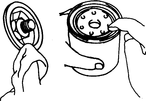 Periksa dan bersihkan tempat dudukan saringan oli. Beri oli atau vet pada paking saringan oli baru.