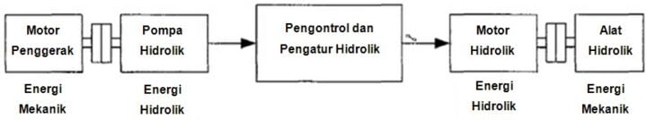Salah satu bentuk pemindahan energi (transfer of energy) dengan menggunakan sistem hidrolik secara skematis adalah sebagai berikut: