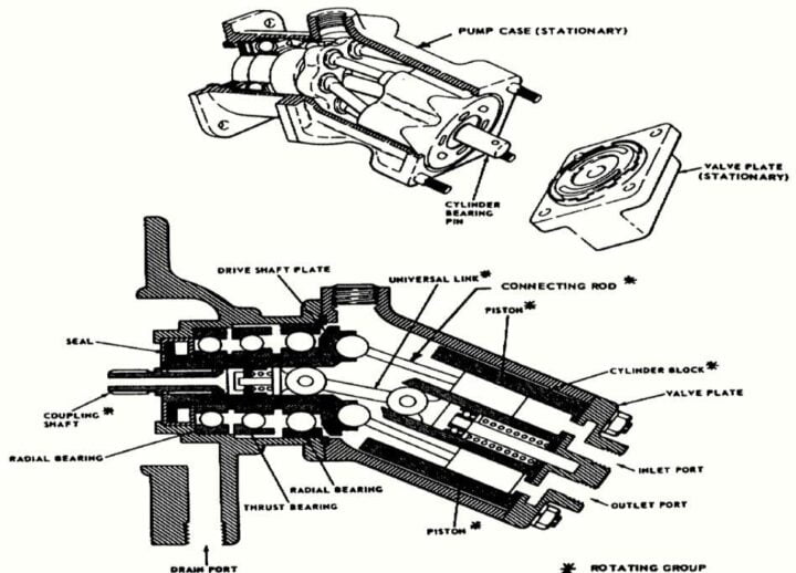 Pada saat drive coupling menyalurkan tenaga putar dari penggerak maka piston berputar searah dengan silindernya karena dihubungkan oleh universal line (Silinder) dan connecting road (Piston). Sudut (angular) antara poros drive coupling dengan poros pompa mengakibatkan piston bergerak axial terhadap bore selama penggerak memutar pompa melalui drive coupling.