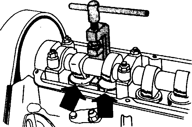 - Putar motor sehingga katup buang sebuah silinder (dalam kolom 1) pada posisi terbuka penuh. Posisi katup terbuka penuh dapat dilihat dari gerakan penekanan maksimum tuas katup pada katup.