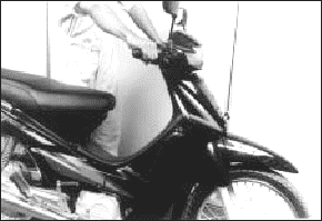 1) Memeriksa kerja sistem suspensi depan dengan menekan bagian depan sepeda motor beberapa kali (dengan rem ditahan).