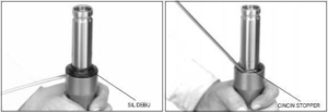 CATATAN : Jika torak garpu berputar bersama dengan baut soket, untuk sementara pasang pegas garpu dan baut garpu.