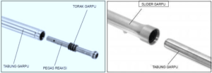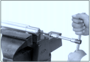 - Lepaskan torak garpu dan pegas reaksi dari tabung garpu, dan tarik keluar tabung garpu dari slider