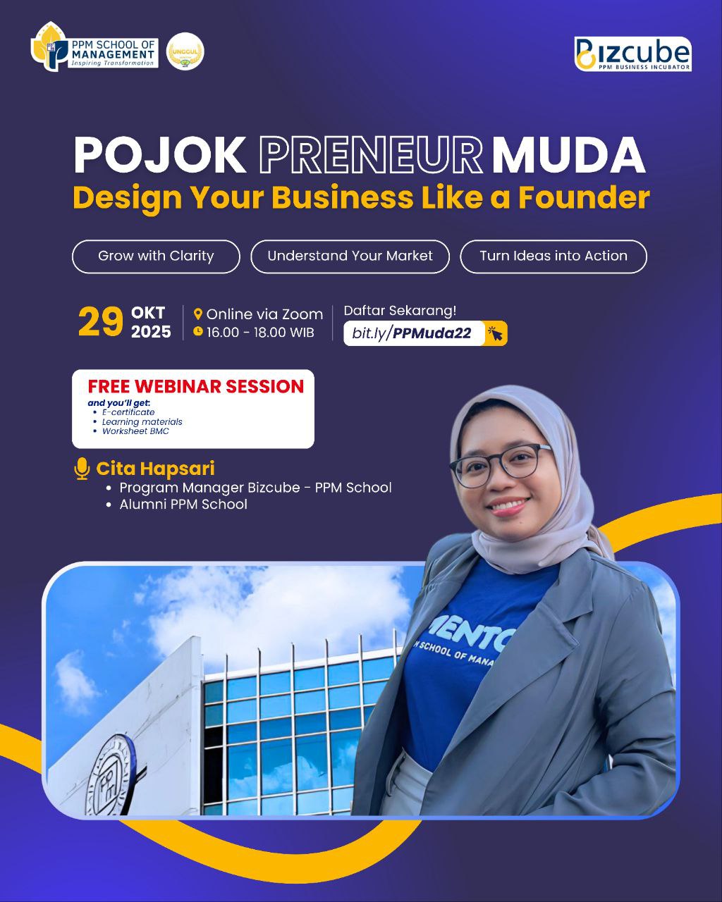 Di sesi ini bareng Cita Hapsari β Program Manager Bizcube & Alumni PPM School β kamu bakal belajar: