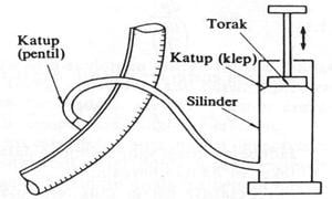 Setelah itu torak akan bergerak kekiri dan terjadi pemampatan udara pada sisi sebelah kiri torak dan katub keluar sebelah kiri akan terbuka. Pada saat yang sama juga terjadi kevakuman pada ruang disebelah kanan torak, sehingga katub masuk sebelah kanan terbuka dan udara dari saringan akan masuk ke ruang disebelah kanan dari torak