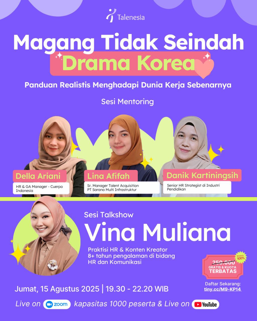 1️⃣ Sesi Talkshow – Ngobrol bareng Kak Vina soal realita magang & dunia kerja.