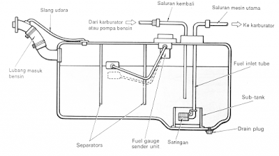 Bahan bakar dialirkan dari tangki ke karburator melalui saluran bahan bakar (pipa dan selang).