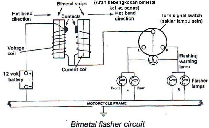 Cara kerja sistem tanda belok dengan flasher tipe bimetal