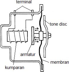 Gambar. Konstruksi klakson listrik jenis iringan