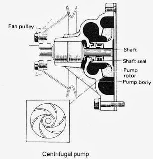 Alat ini berfungsi untuk memompa air radiator dari lower tank ke mesin kembali untuk kembali mendinginkan mesin. Pulley alat ini dihubungkan dengan putaran mesin melalui V-Belt. Sehingga alat ini bekerja berdasarkan putaran mesin
