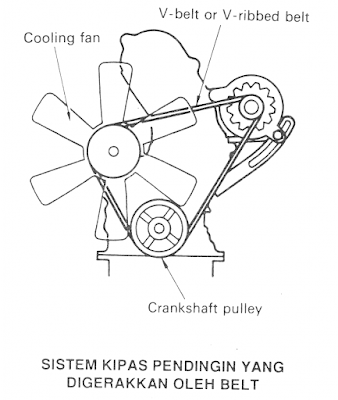 untuk mengatasi problem seperti tersebut di atas. Penggerak cooling fan digerakkan oleh V-belt atau