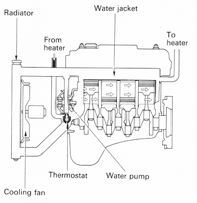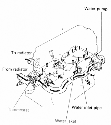 dilengkapi oleh water jacket pompa air, radiator, thermostat, kipas, selang karet dan lain-lain.