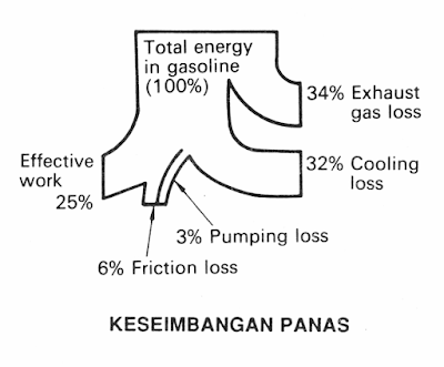 Pada mesin bensin hanya 23 sampai 28% energi panas dari
