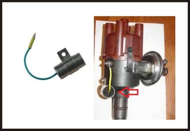 Kondensor terletak menempel pada bodi distributor, kabel kondensor dihubungkan dengan kabel dari koil (-). Letak kondensor dapat dilihat pada gambar di bawah.