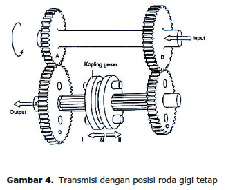 Seperti telah dikemukakan di atas, transmisi pada kendaraan terdiri dari berbagai bentuk roda gigi, ada yang sistem tetap ada yang digeser (slidingmesh). Berikut ini akan dicoba dijelaskan konsep kerja masing-masing.