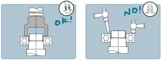 - Pastikan bahwa semua pressing blocks, driving plates, hammers dan peralatan pemasangan yang lainnya dalam kondisi bersih, bebas dari tonjolan (burrs), dan ukurannya benar.