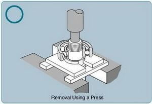 Dalam kondisi yang memungkinkan, bearing juga harus dilepas dengan menggunakan mesin/alat press. Dengan proses ini kerusakan poros maupun bearing akibat kejutan bisa dikurangi maupun ditiadakan.