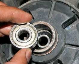 Dalam kondisi yang memungkinkan, bearing juga harus dilepas dengan menggunakan mesin/alat press. Dengan proses ini kerusakan poros maupun bearing akibat kejutan bisa dikurangi maupun ditiadakan.