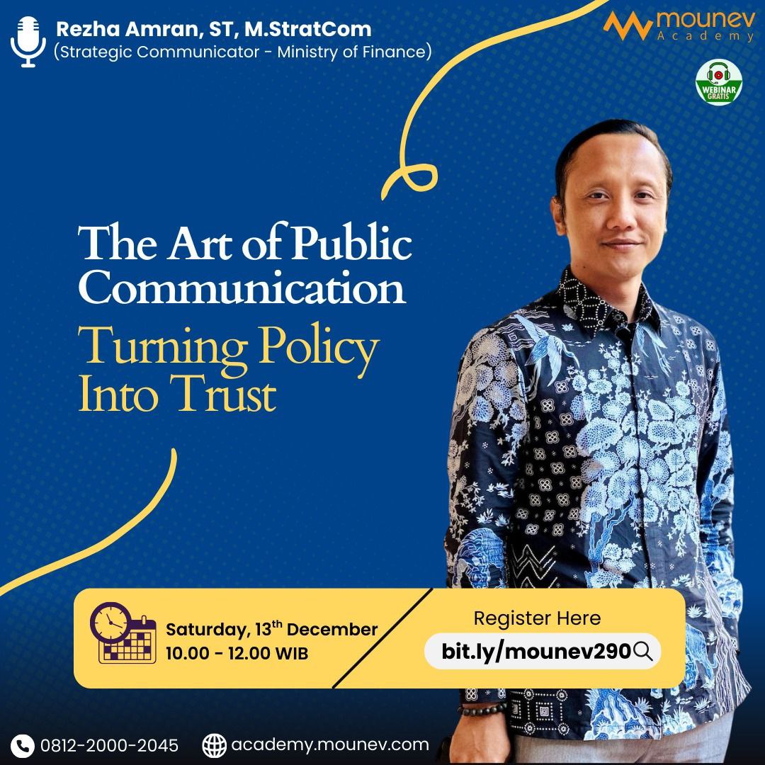 Nah, pada webinar kali ini kalian akan belajar cara berpikir layaknya seorang Strategic Communicator, mulai dari memahami bagaimana pesan kunci disusun, direncanakan, dan diarahkan untuk membentuk kepercayaan serta partisipasi masyarakat.