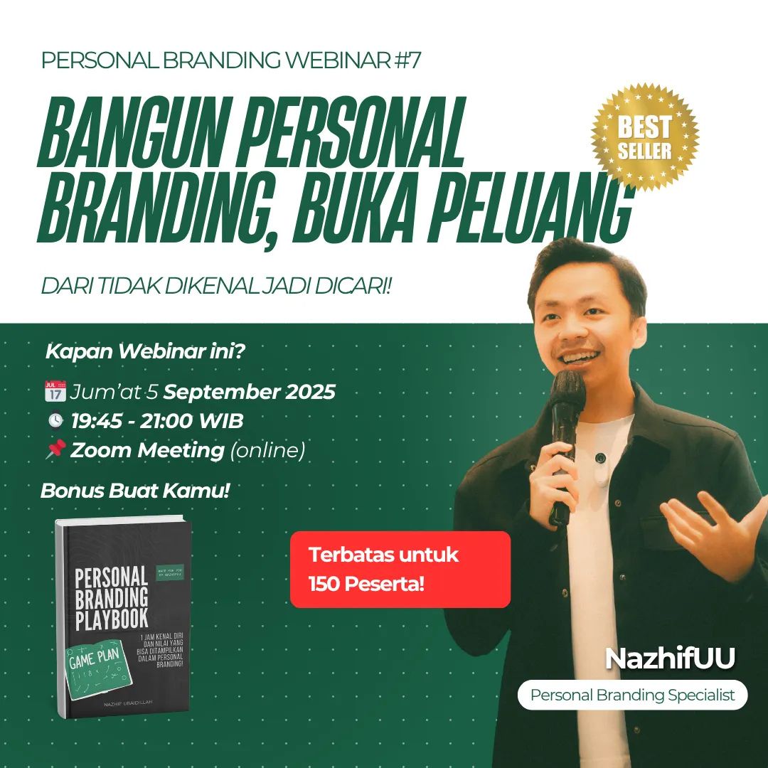 Webinar ini dirancang khusus untuk pemula yang ingin membangun Personal Branding yang kuat, tapi belum tahu caranya.