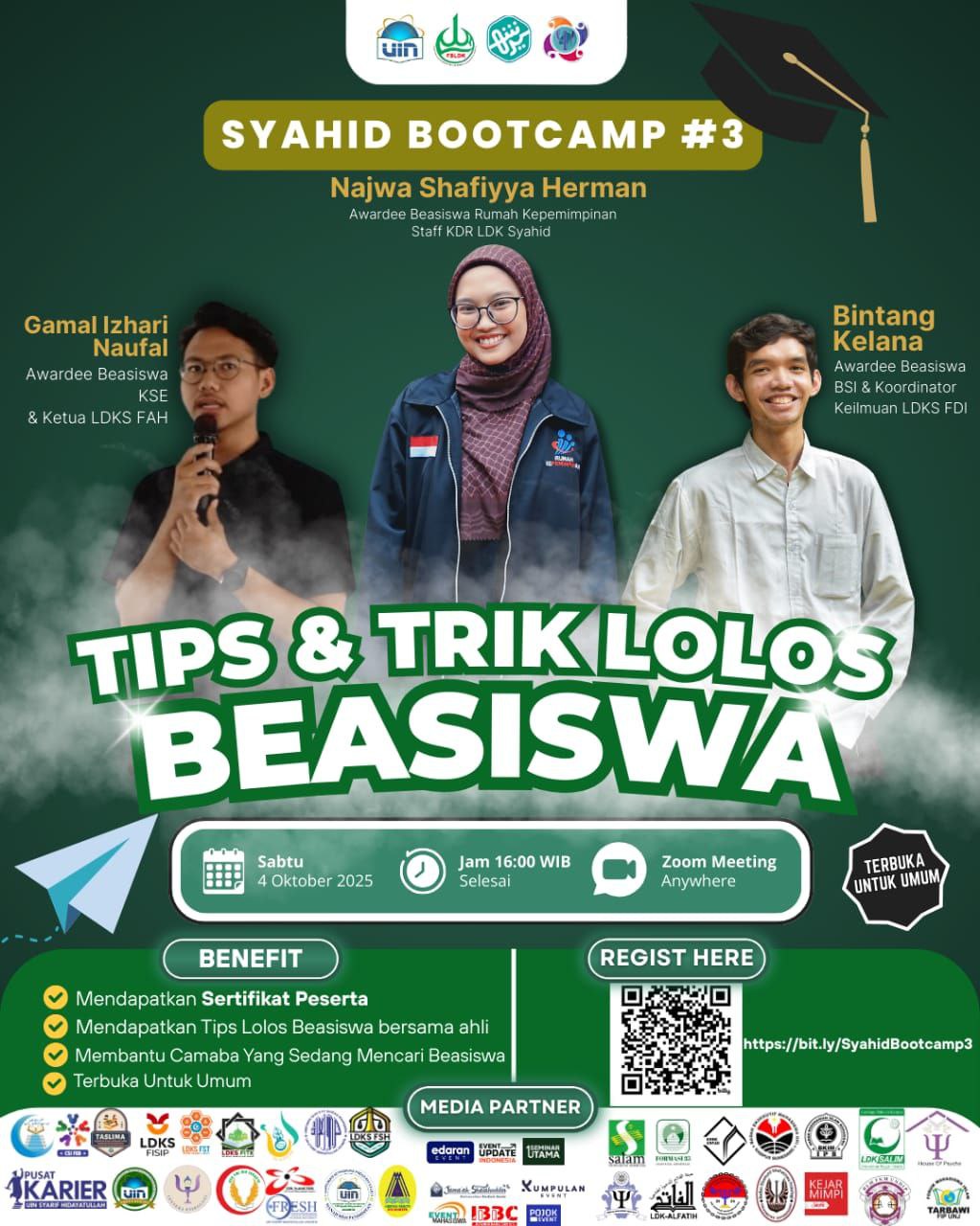 Kami menghadirkan webinar seputar 𝐓𝐈𝐏𝐒 𝐃𝐀𝐍 𝐓𝐑𝐈𝐊 𝐋𝐎𝐋𝐎𝐒 𝐁𝐄𝐀𝐒𝐈𝐒𝐖𝐀 yang pastinya inspiratif dan penuh insight. Mau jadi bagian penerima beasiswa?