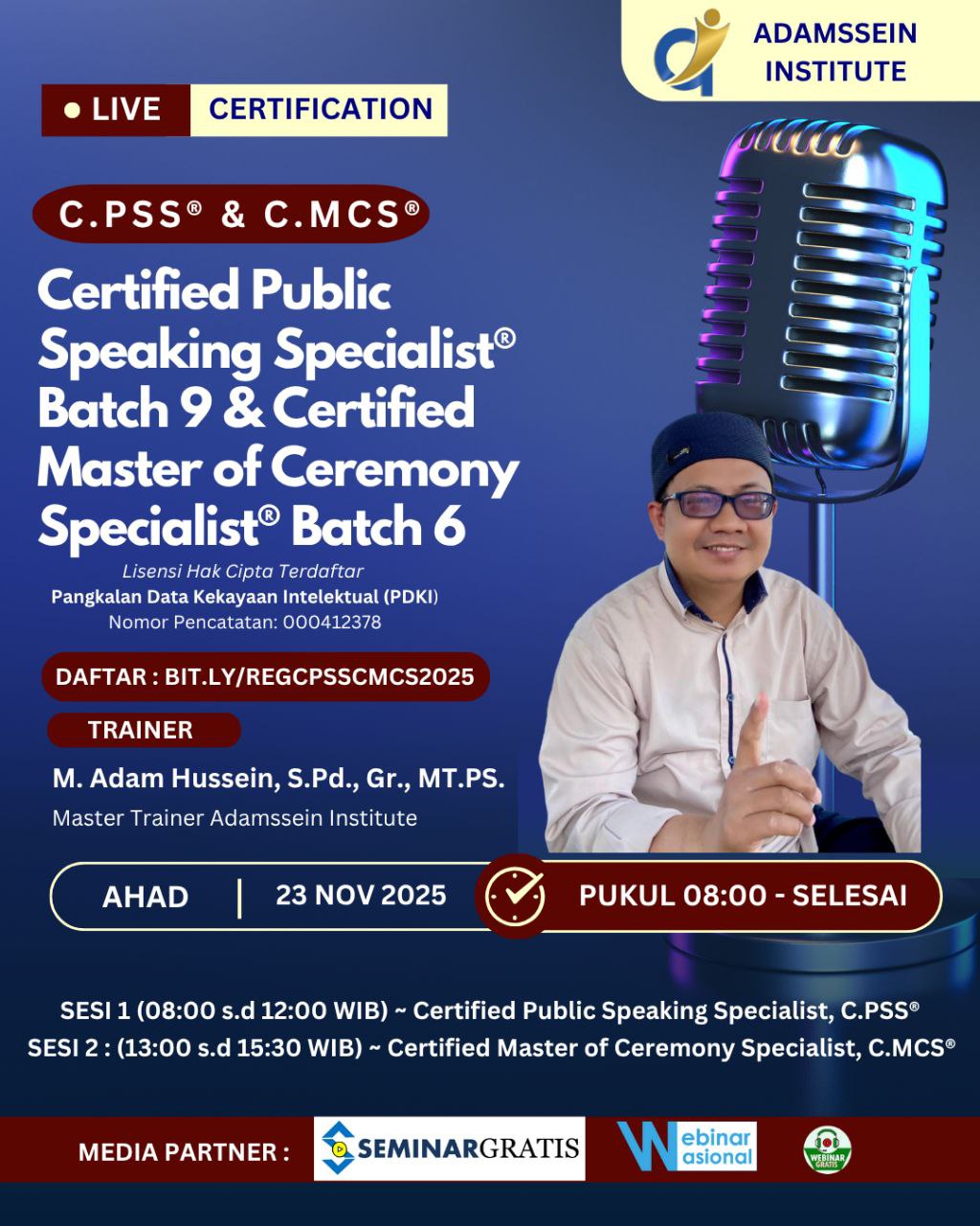 Kuasai public speaking dan MC skill secara profesional bersama program bersertifikat nasional: